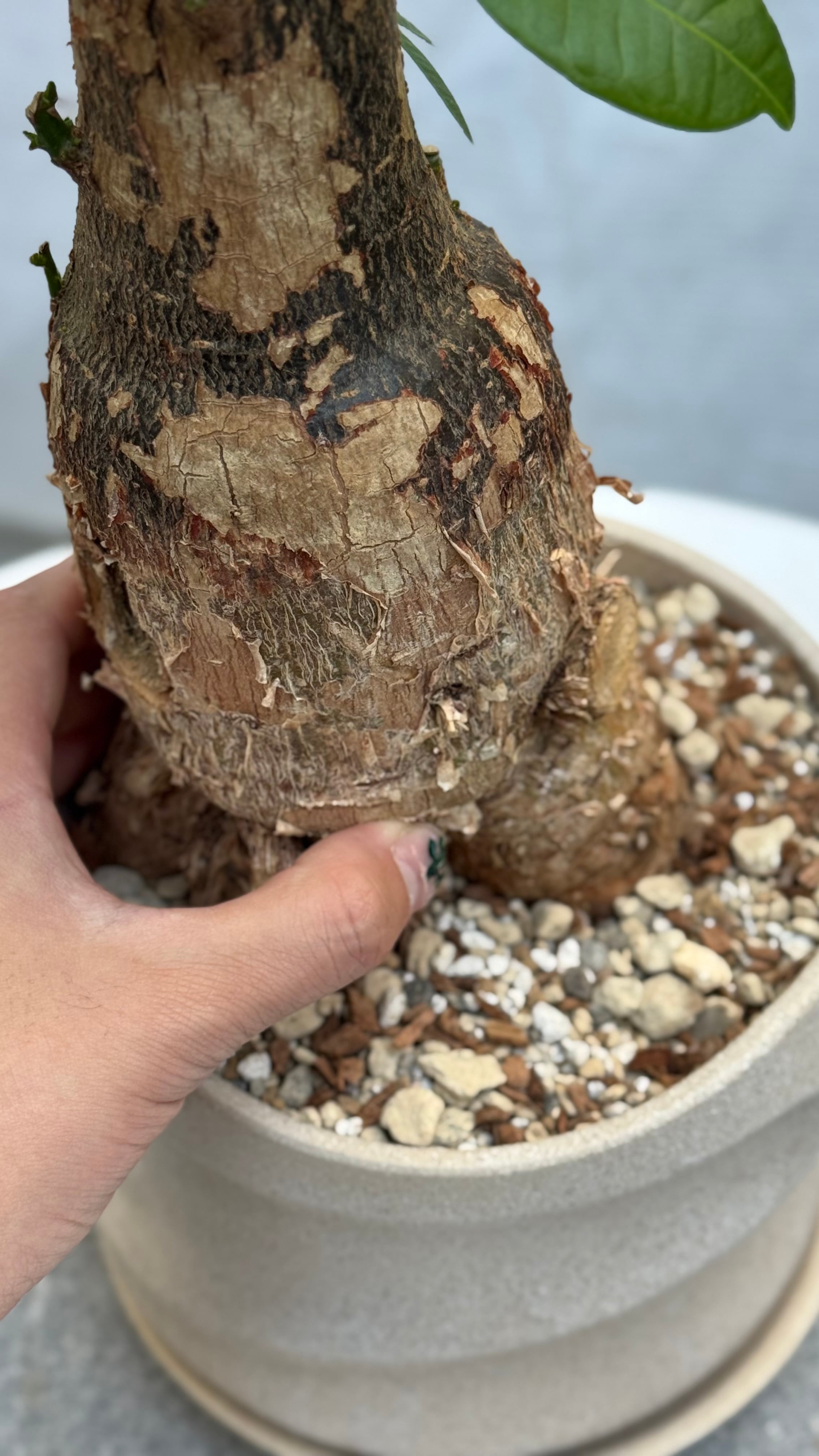 唯一無二の樹形。お腹に窓や芽吹きがある個体です。