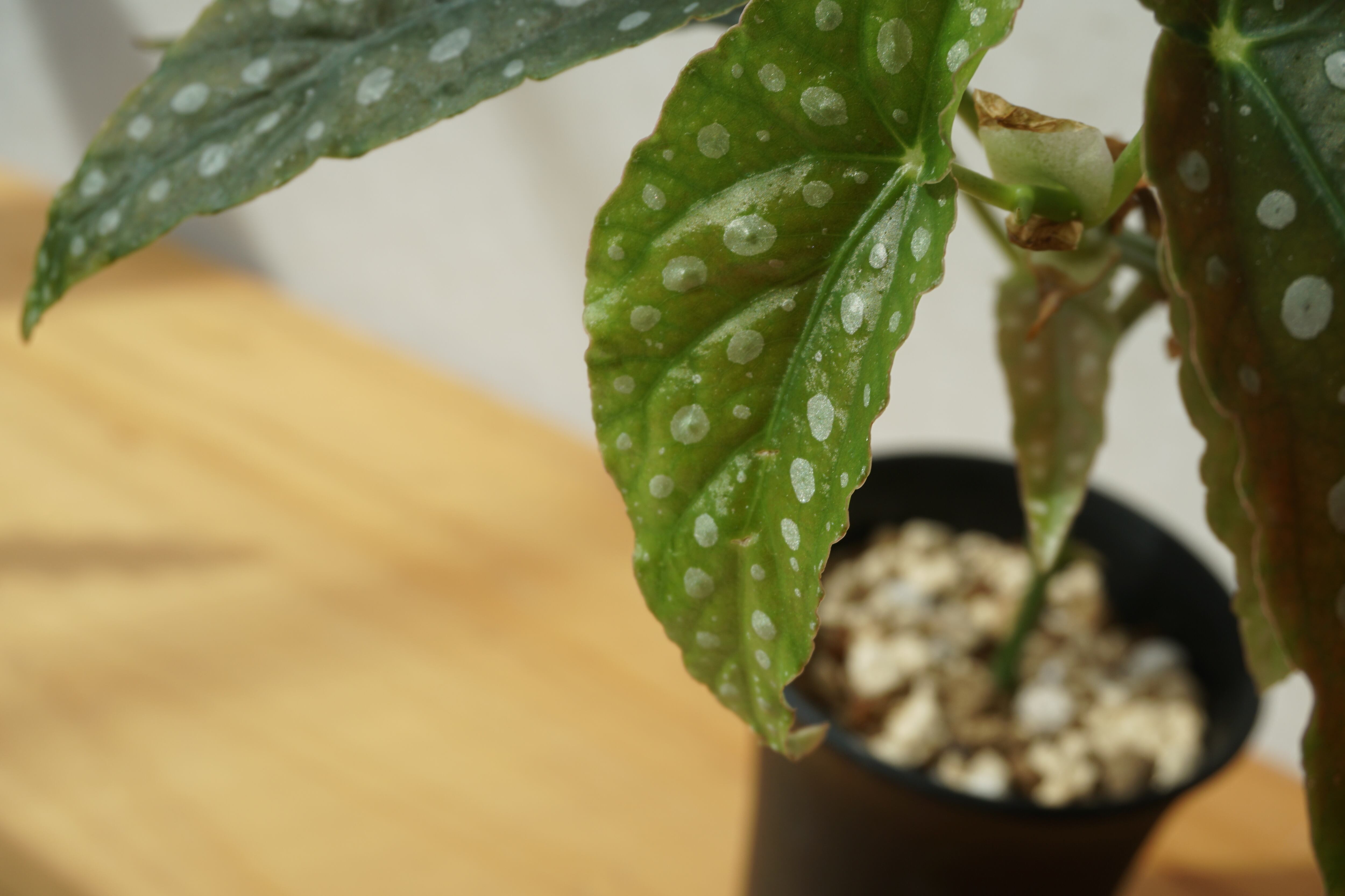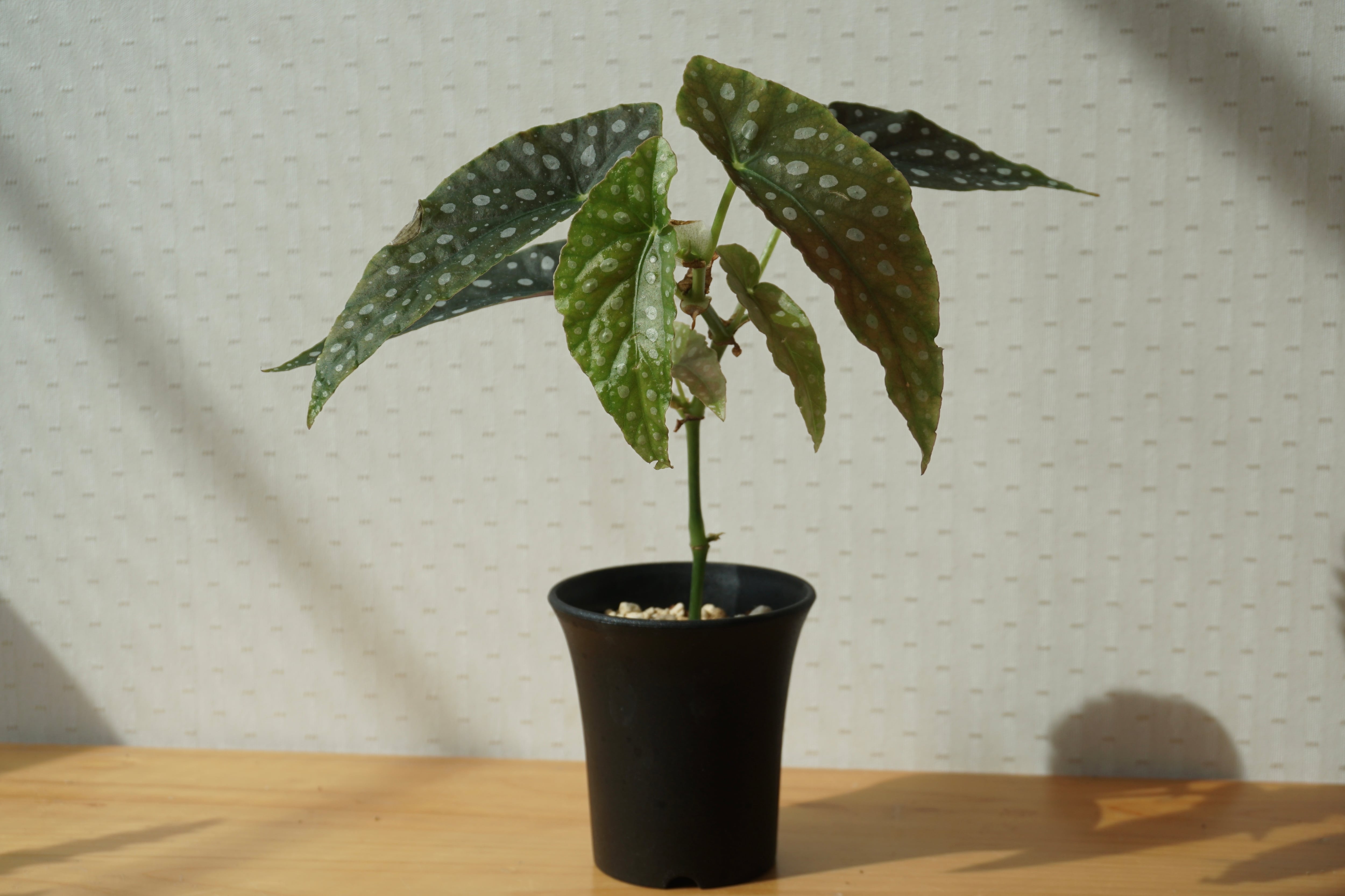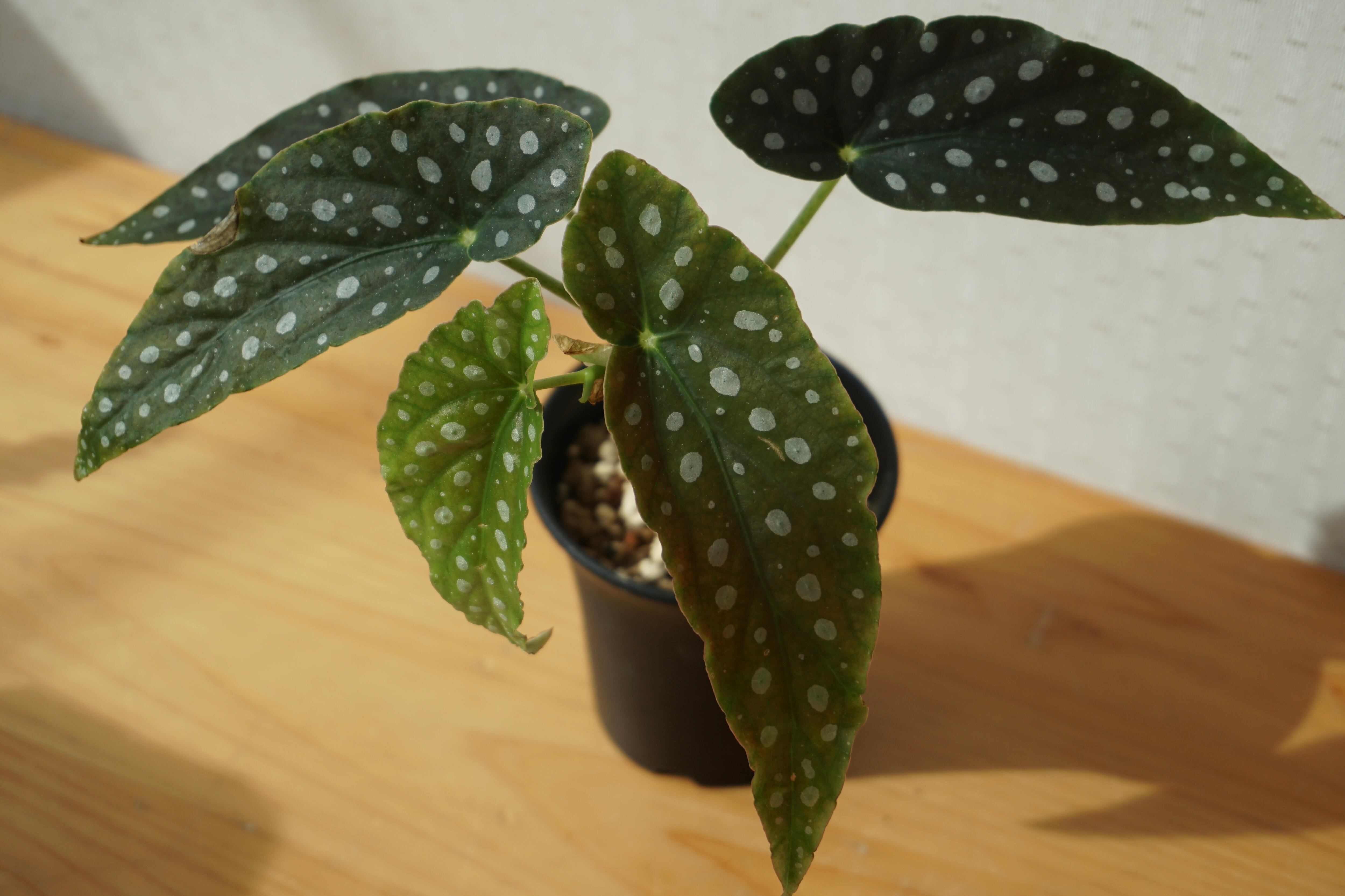 白いドットが美しく、ベコニアの中でも斑点が大きい品種。生育はとても盛んでとても大きくなります。